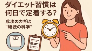 日々の記録 「ダイエット習慣は何日で身につく?成功のカギは“継続の科学”」 ダイエットを習慣化するには何日かかる?平均66日で定着する習慣化の科学を解説。食事・運動・生活習慣ごとの目安と、挫折しないコツを紹介します。 2025.09.18 日々の記録