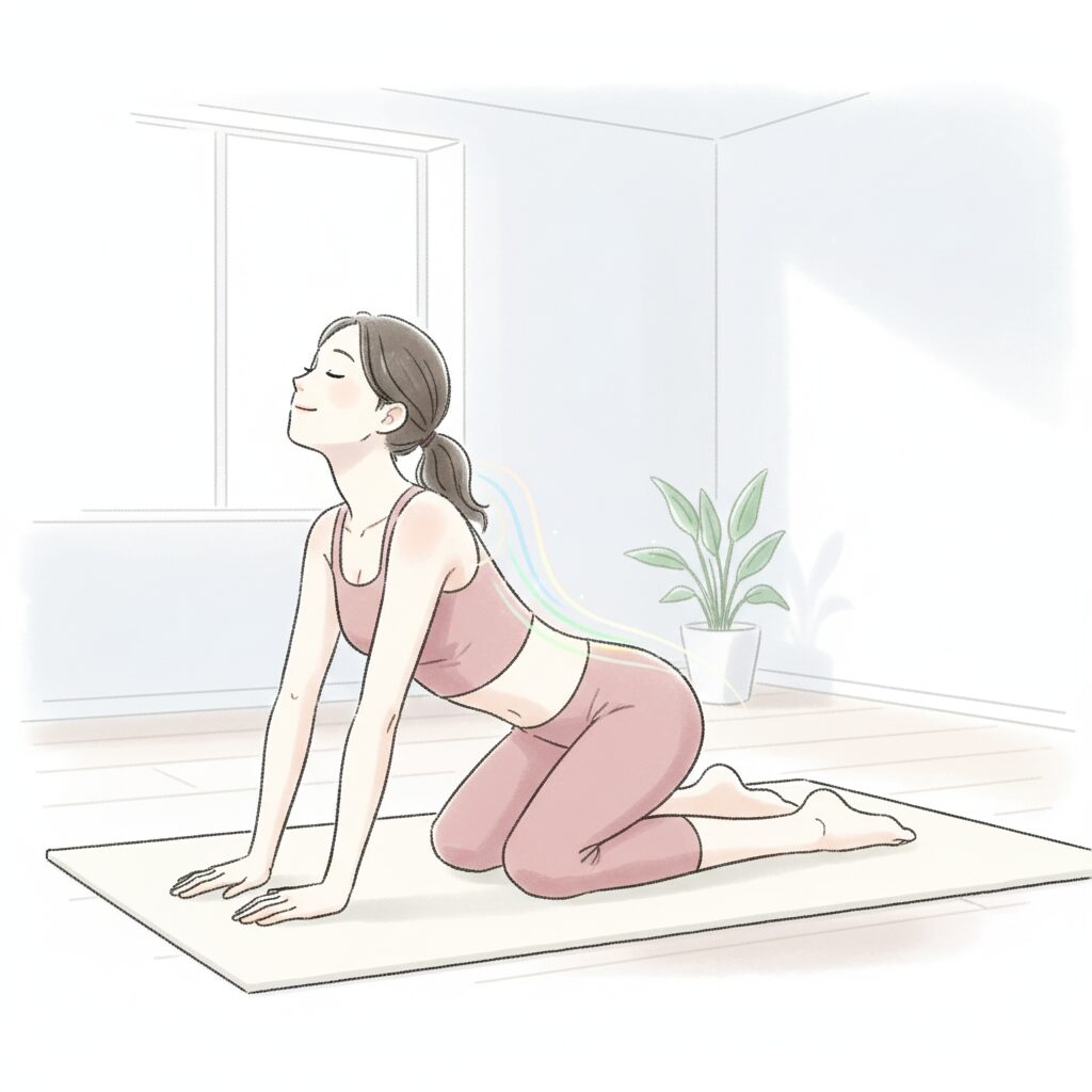骨盤が立つと、背骨は自然と天井へ伸びていきます。