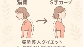 猫背と背骨のS字カーブの違いをわかりやすく解説。姿勢を整えることで代謝アップ・ぽっこりお腹の解消・美しいボディラインを目指す方法を紹介します。