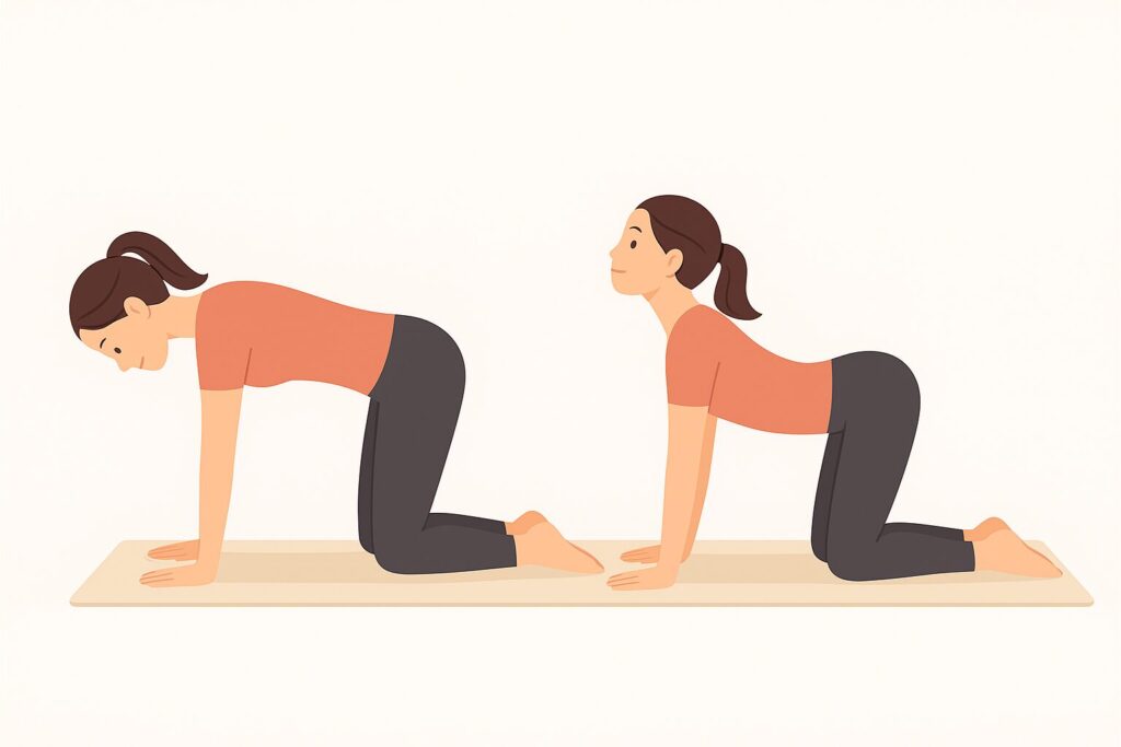 👉 ポイント:丸める動きを丁寧にし、腰の反りをリセットする。